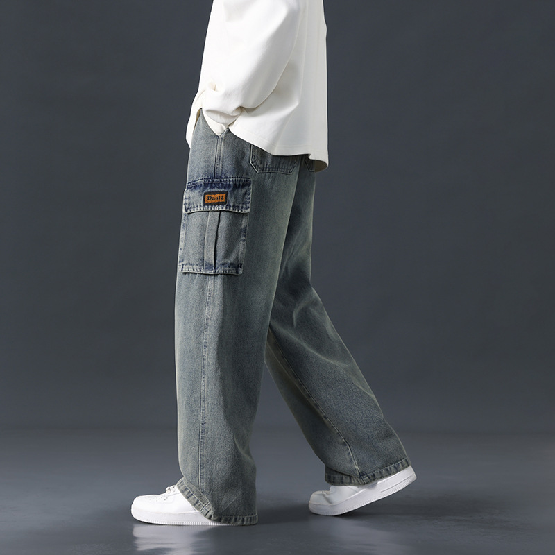 quần jean túi hộp quần bò ống đứng rộng vải jean mềm co giãn quần bò thoải mái quần cargo jean quần jean túi hộp